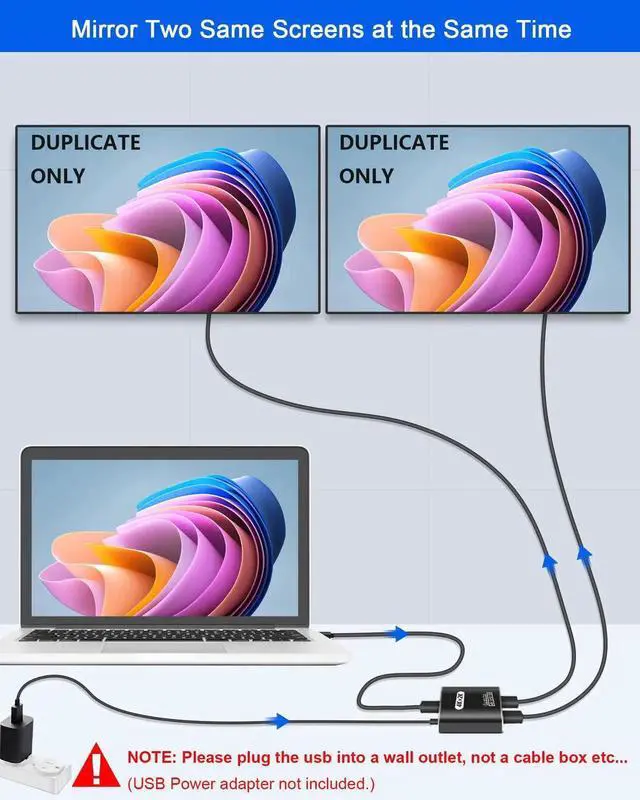 Additional Features- [Plug and Play] HDMI Splitters has 1 HDMI input port, 2 HDMI output port, one USB power port. It's plug and play, just plug the attached USB power cable to supply power, connect the HDMI signal source device like blueray player, connect the 2 HDMI display devices like monitor, HDTV, projector by HDMI cable.