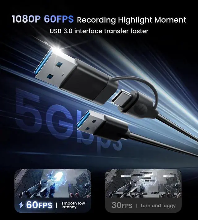 Mic Audio Input for Commentary: Features 3.5mm mic input for real-time commentary. Mix your voice seamlessly with in-game audio or connect headphones via the audio out port for smooth streaming and recording experiences during gameplay or broadcasts.