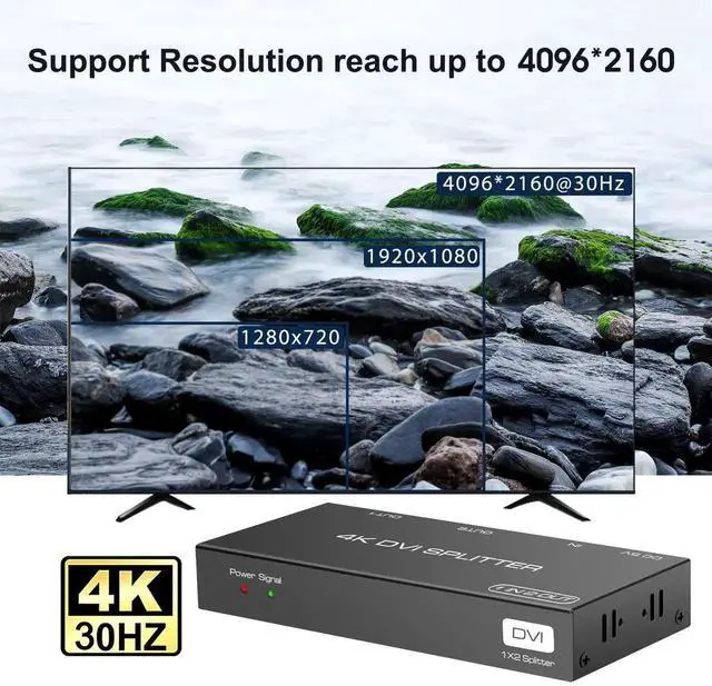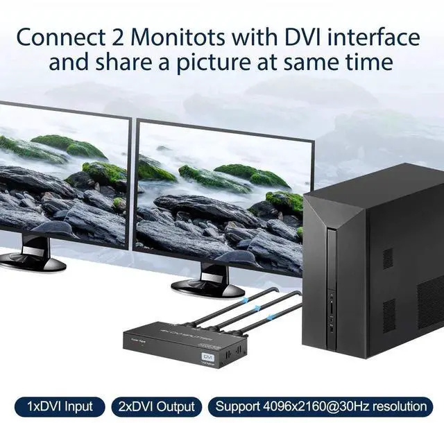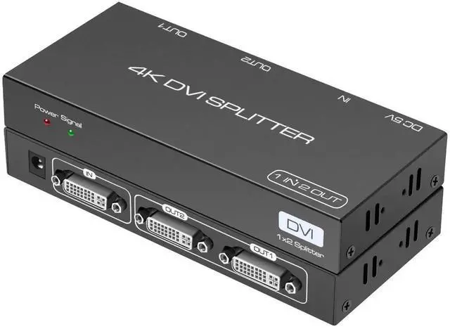 DVI Splitter 1 in 2 Out 2 Port DVI Dual Monitors Distribution Duplicator Video Splitter Support EDID Management Resolution up to 4K30Hz for PC Laptop DVR Projector HDTV
