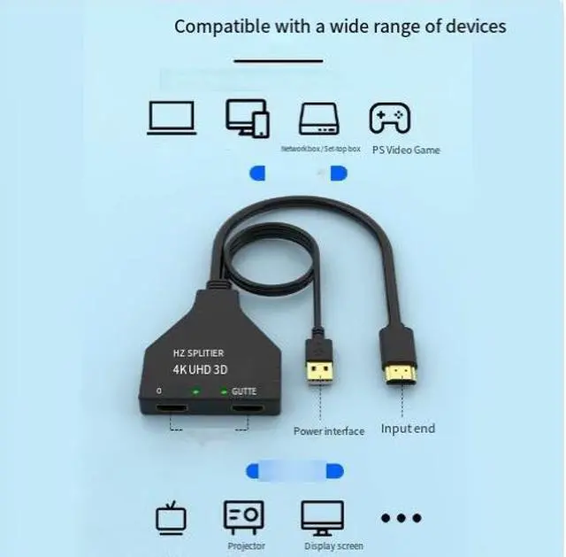 Share your favorite content on two screens simultaneously with this HDMI Splitter 1x2. Perfect for home theater setups, gaming stations, conference rooms, or sports bars, this compact splitter duplicates a single HDMI source to two displaysensuring both screens show the same crystal-clear 4K video and high-definition audio.