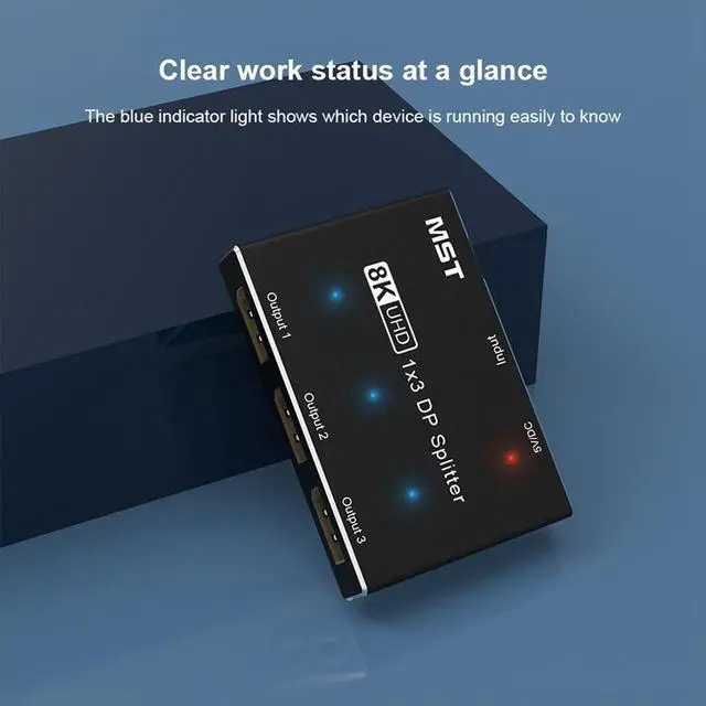 Maximize your screen real estate with this DisplayPort 1.3 Splitter (1x3) . Featuring MST (Multi-Stream Transport) technology, this compact splitter allows you to connect a single DisplayPort sourcesuch as a laptop, desktop, or graphics cardto three DP monitors or projectors simultaneously, creating an immersive multi-display environment for gaming, productivity, and creative work.