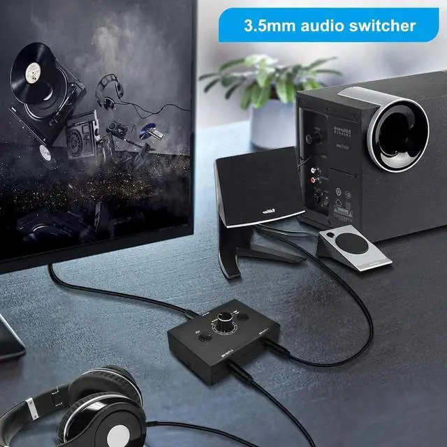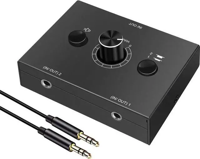 3.5 mm Audio selector 3.5 mm Audio Switch Audio Switcher, Passive Speaker Headphone Manual Selector Splitter Box Audio Sharing (2-IN-1-OUT/1-IN-2-OUT), No External Power Required