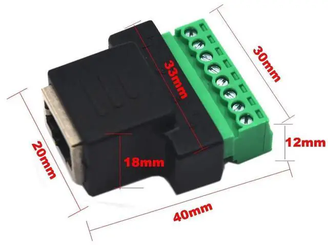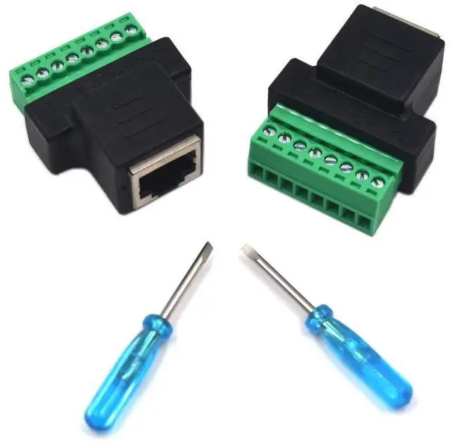 If you need to connect an RJ45 cable (a.k.a Ethernet) to a board that with an Ethernet Jack - this adapter will come in very handy! No soldering required. Just use a slim screwdriver to open up the terminal blocks, slide in your stranded or solid-core wire and re-tighten. Note that these aren't recommended for actual Ethernet traffic, especially long terminal.but for basic power/data distribution, RJ45's are great!