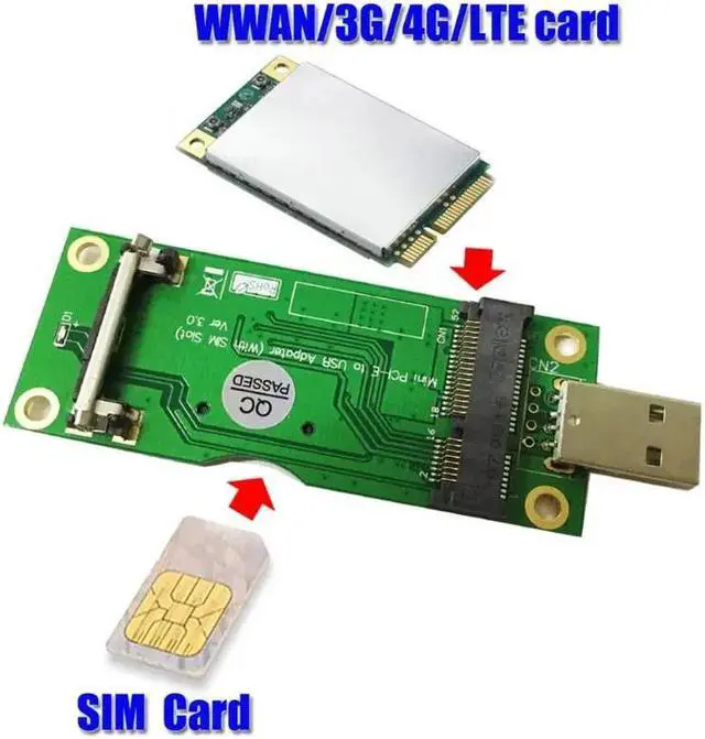 Mini Wireless PCI-E WWAN Card to USB Adapter Card with SIM Card Slot