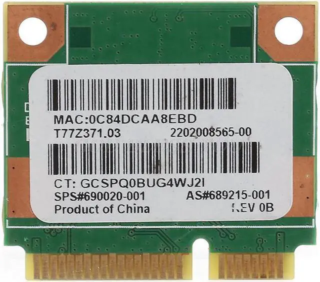 Description: machine dedicated RT3290 Wireless LAN + Bluetooth with genuine Part Number SPS: 690020-001It can also support other brands of machines MINI PCI-E interface. Super affordable version.Chip: RT5390 3290Compatible: Ralink RT5390 802.11b / g / n wifi Adapter # 2,Peak rate: 150MbpsBluetooth: Ralink BC8 Bluetooth 3.0 + HS AdapterWorking frequency band: 2.4GHz, ISM bandMini PCIe card, USB interface protocolIPEX stand, 1T1R external antennaIt supports the following models:For Envy 15-j000 Seriesfor ENVY dv4-5200 Seriesfor ENVY dv6-7200 Seriesfor ENVY dv7-7200 Seriesfor ENVY m4-1000 Seriesfor ENVY m6 Sleekbook Seriesfor ENVY m6-1200 Seriesfor ENVY TouchSmart 15-j000 Seriesfor Pavilion 14-n000 Seriesfor Pavilion 15-n000 Seriesfor Pavilion G6 seriesfor Pavilion G7-2000 seriesfor Pavilion TouchSmart 15-n000 Seriesfor ProBook 4440sfor ProBook 4446sfor Envy 15-j100 Seriesfor ENVY dv4-5300 Seriesfor ENVY dv6-7300 Seriesfor ENVY dv7-7300 Seriesfor ENVY m4-1100 Seriesfor ENVY m6-1000 Seriesfor ENVY m6-1300 Seriesfor ENVY TouchSmart 15-j100 Seriesfor Pavilion 15 Seriesfor Pavilion 17 seriesfor Pavilion G6-2000 Seriesfor Pavilion TouchSmart 11-e000 Seriesfor ProBook 4340sfor ProBook 4441sfor ProBook 4540sfor ENVY dv4 Seriesfor ENVY dv6 Seriesfor ENVY dv7 Seriesfor ENVY m4 Seriesfor ENVY m6 Seriesfor ENVY m6-1100 Seriesfor ENVY m6-k000 Sleekbook Seriesfor Pavilion 14 Seriesfor Pavilion 15-e000 Seriesfor Pavilion 17-e000 seriesfor Pavilion G7 seriesfor Pavilion TouchSmart 14-f000 Sleekbook Seriesfor ProBook 4341sfor ProBook 4445sfor ProBook 4740sPCB Size:(L*W) 3.00*2.70cm/1.18"*1.06"Quantity: 1Pc