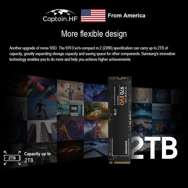 Accelerate into next-gen computing. The 970 EVO delivers breakthrough speeds, superb reliability, and a broad range of capacity options up to 2TB*. The latest V-NAND, new Phoenix controller, and ligent TurboWrite technology enhance high-end gaming and 4K & 3D graphic editing.