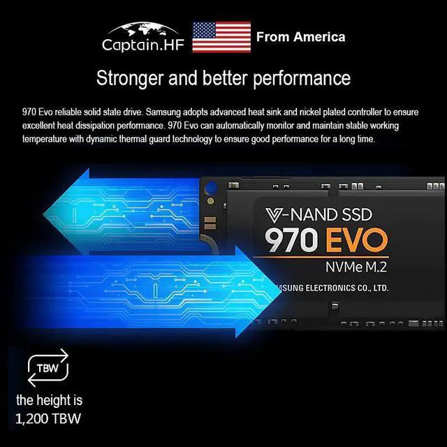 INNOVATIVE V NAND TECHNOLOGY: Powered by V NAND Technology, the 970 EVO SSDs NVMe interface (PCIe M.2 2280) offers enhanced bandwidth, low latency, and power efficiency ideal for tech enthusiasts, high end gamers, and 4K & 3D content designers