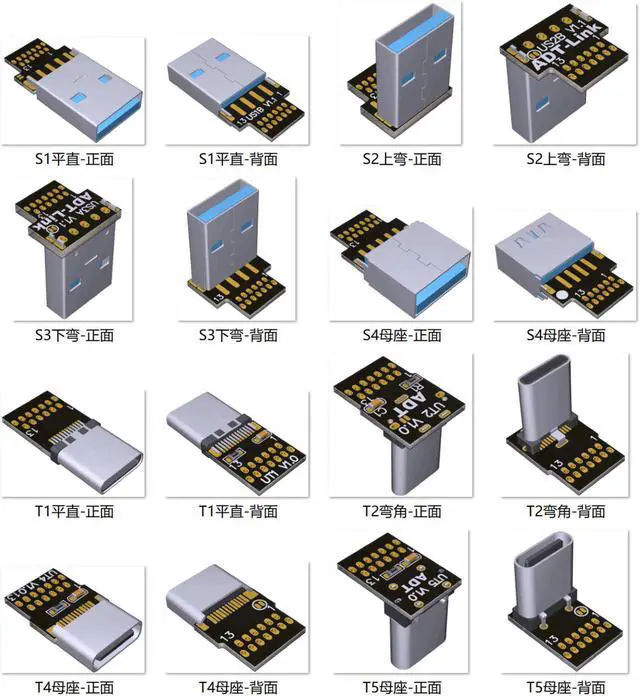 T1_Type-C flat mountT2_Type-C right angleT4_Type-C female flat mountT5_Type-C female right angle