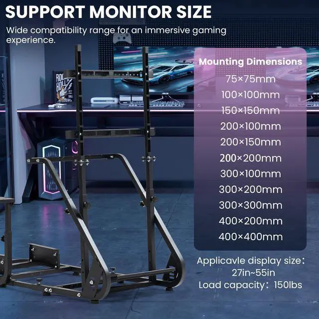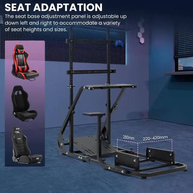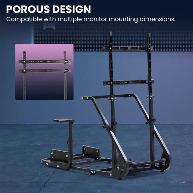 FeaturesThis racing simulator cockpit has a new upgrade from the regular bracket, with a monitor bracket mounting square tube above the bracket and a TV mountable monitor bracket. Let you have a perfect gaming experience.