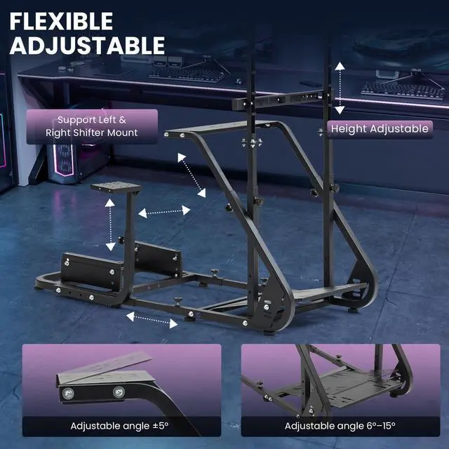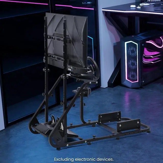 Warm TipsOur racing game simulator cockpit includes the main body of the bracket and the monitor bracket, and does not include the steering wheel, pedals, shifter, seat and TV and other game equipment. And due to the large size of the product, it will be divided into two packages for delivery.