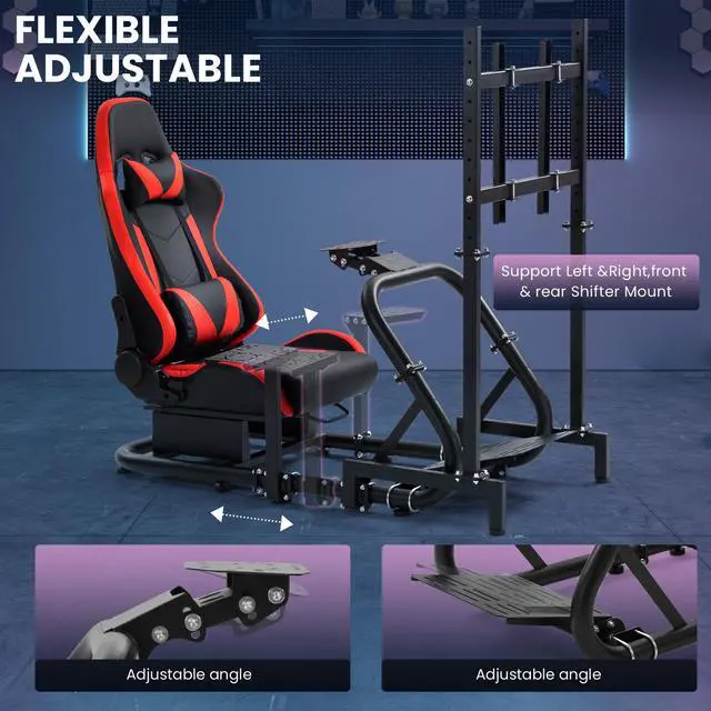 Multi-position adjustment: The steering wheel frame supports six adjustment positions, the angle can be adjusted between 0-45°, the height also has 120mm adjustment space, the pedal platform also has three gears.