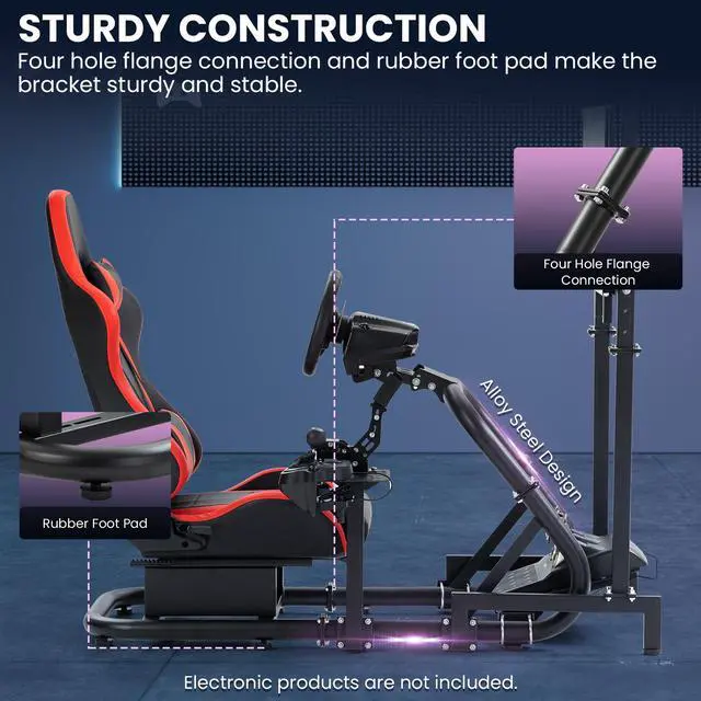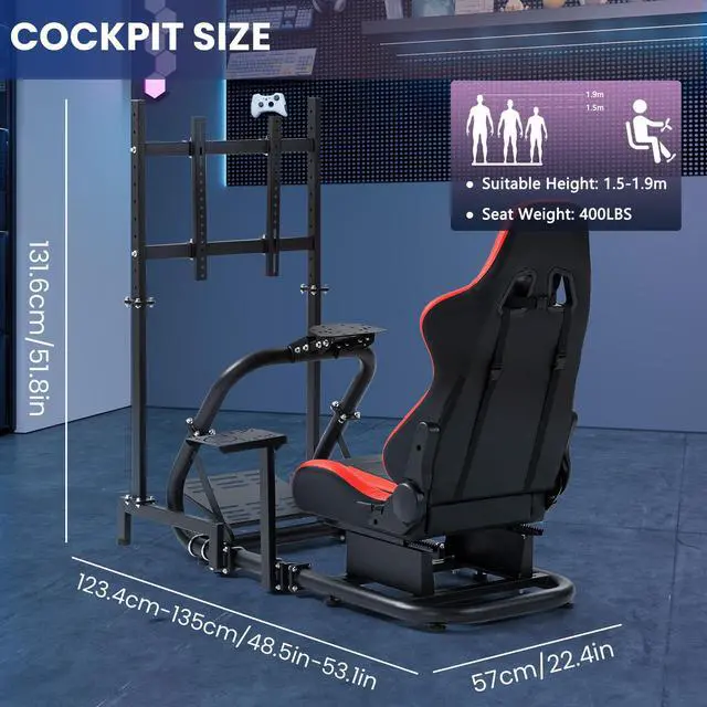 High Stability: The racing cockpit is designed with a flange structure, each joint is fixed with four large screws, providing professional, stable and safe driving equipment for professional racers.
