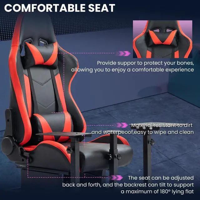 With Professional Racing SeatRacing Seat features double-lock double-chute design. Ensures seat is securely attached to stand and is adjustable. Ergonomic design for extra comfort, backrest adjusts 90-175°.