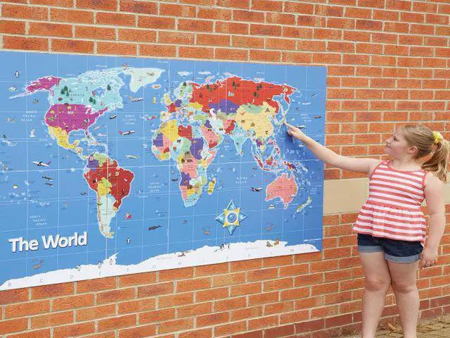 Product code: GE00657 Travel the World and go on a voyage of discovery with this massive World outdoor signboard! The new curriculum means children need to learn the names of the continents and oceans amongst everything else, making this resource the perfect learning tool. It will also create a stunning display for your outdoor classroom and is printed onto a weather-proof Foamex (3mm thick) so it will not fade or get damaged by the weather!