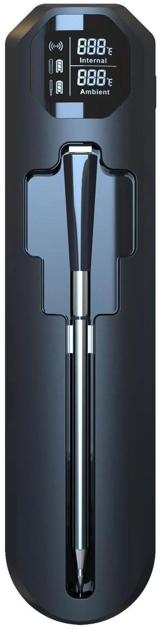 | Outstanding Features | 1. High resolution VA display. | 2. Around 820ft wireless transmission range. | 3. Probe is waterproof to IP67, dishwasher-friendly. | 4. New upgraded blue tooth 5.3 technology. | 5. With 2 measurement sensors. | 6. Temperature accuracy: +/-1° C (+/-1.8° F). | 7. Multi-Function smart booster with charging. | 8. App presets and recipes. | 9.Compatible with iOS and Android systems. | 10. With strong internal magnets on backside. |