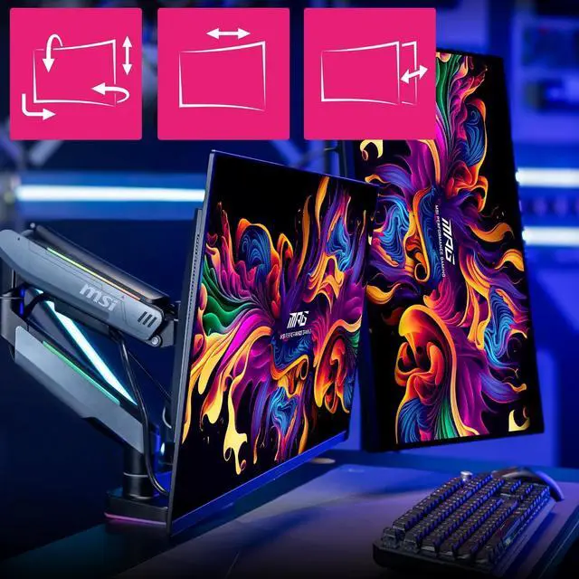 MSI MPG MT201DR V2-Premium RGB Dual Monitor Stand Arms,17-35" Support,VESA Compatible,Adjustable Heavy Duty Gas Spring Mount,44 lbs per Screen Capacity,Clamp&Grommet,Quick Release Plate-Gray