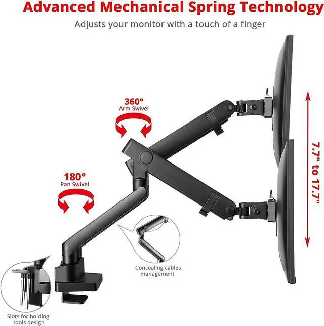 PREMIUM SUPPORT: This Aluminum Spring Monitor Arm Mount is backed by a 3 YEAR . Contact us if you have any questions regarding the set up or compatibility.
