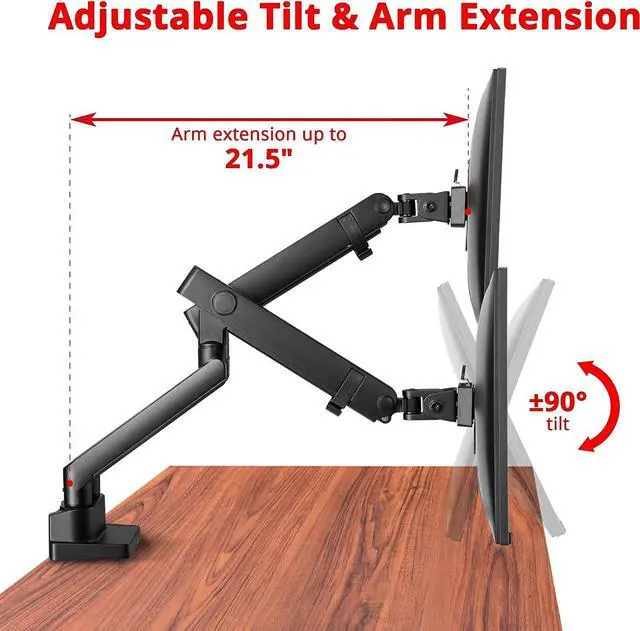SIIG Aluminum Mechanical Dual Monitor Arm Mount - Height Adjustable Desk Mount for 17in to 32in Screens - 17.6lbs Each Arm - VESA 75x75mm 100x100mm