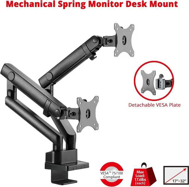 • EASY INSTALLATION AND NO CABLE CLUTTER DESIGN - Detachable VESA panel simplifies installation and attachment of monitors by allowing you to remove the plate from the mount for easy monitor installation. The included cable management clips conceal cables from sight, create a lean, sleek look after setup.