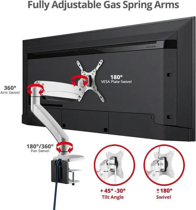Premium Quality Durable Gas Spring - Provides smooth, precise and effortless height adjustment for the perfect viewing angle