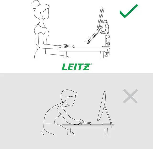 Maximum comfort: the monitor mount improves posture, viewing height and neck and shoulder comfort, the monitor arms are independently adjustable