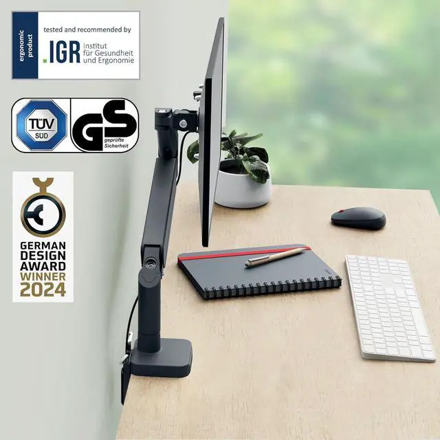 Ergonomic: IGR and TÜV certified, this single monitor arm can improve posture, eye alignment and neck and shoulder comfort when the height of the monitor is adjusted correctly
