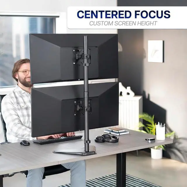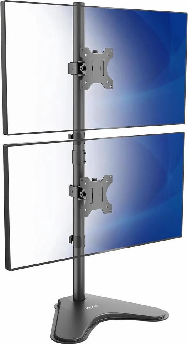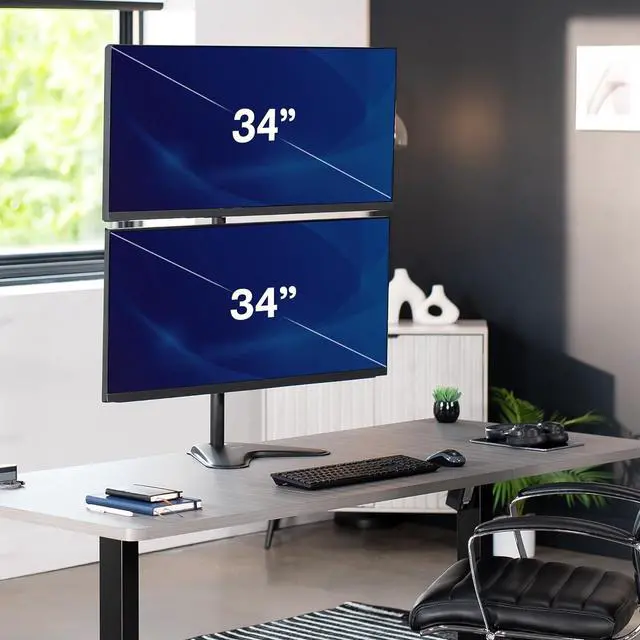 Fits 13" to 34" Screens - Vertical dual monitor mount holds two ultra-wide screens 13 to 34 in size and 22 lbs in weight (each) with 75x75mm or 100x100mm backside mounting holes. Integrated cable management is included to keep cords clean and organized.