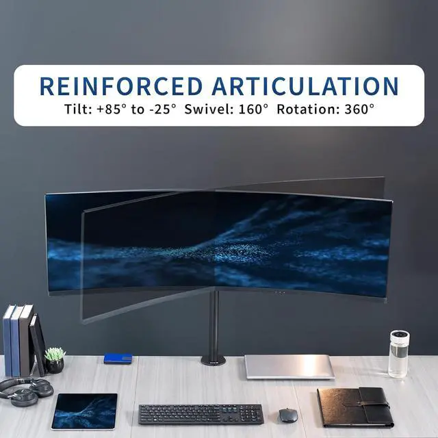 1ARTICULATION2STURDY CONSTRUCTION3REMOVABLE PLATE Screen Size: Up to 49 Ultrawides