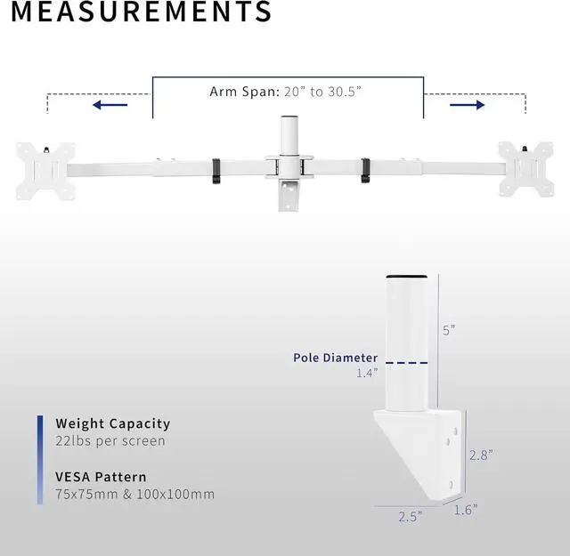 Base Dimensions: 1.6 x 2.5 x 2.8, 5" pole32" Arm