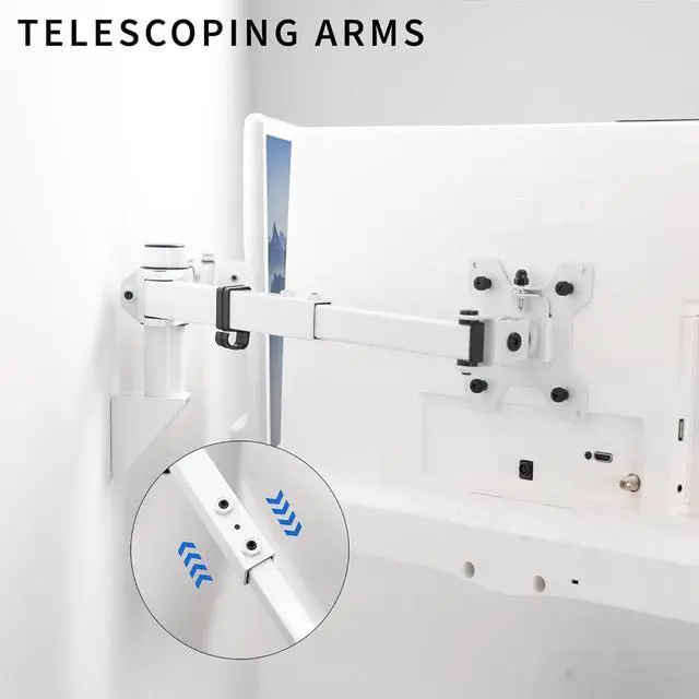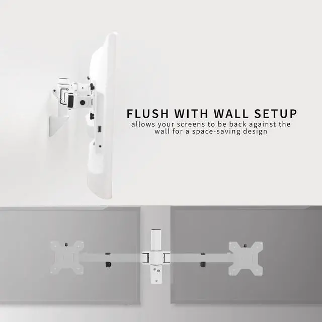 Screen Sizes: 27 to 38 Telescoping Dual Monitor Wall Mount Flush-With-Wall Telescoping Arms Dual Monitor Premium Wall Mount Screen Articulation Wood Stud Installation