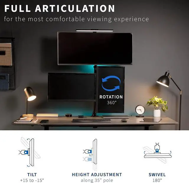 Finding the ideal viewing angle is easy with fully articulating arms. The fluidity allows your monitors to tilt, swivel, and rotate for optimal viewing. Every screen can be placed in either portrait or landscape orientation and is height adjustable.