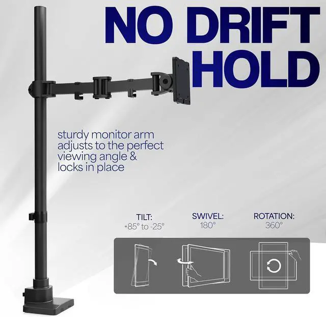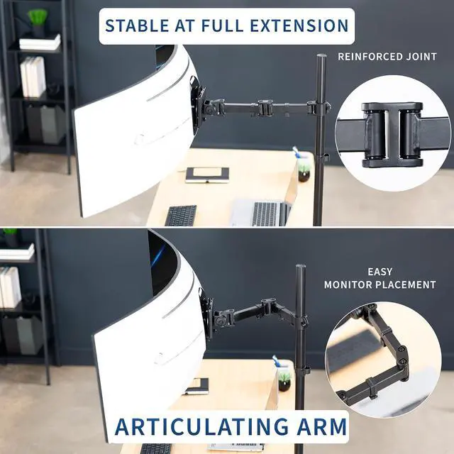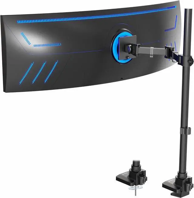 Provides a solid hold for your ultrawide monitor Extra tall pole elevates your screen farther from the desk surface Reinforced Steel Arm Comfortable Viewing Sturdy Steel Construction Sturdy Desk Clamp SPECIFICATIONS