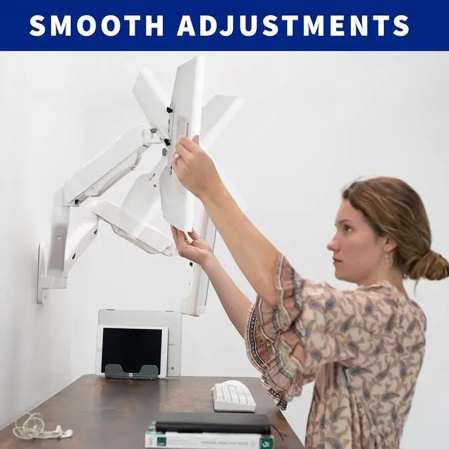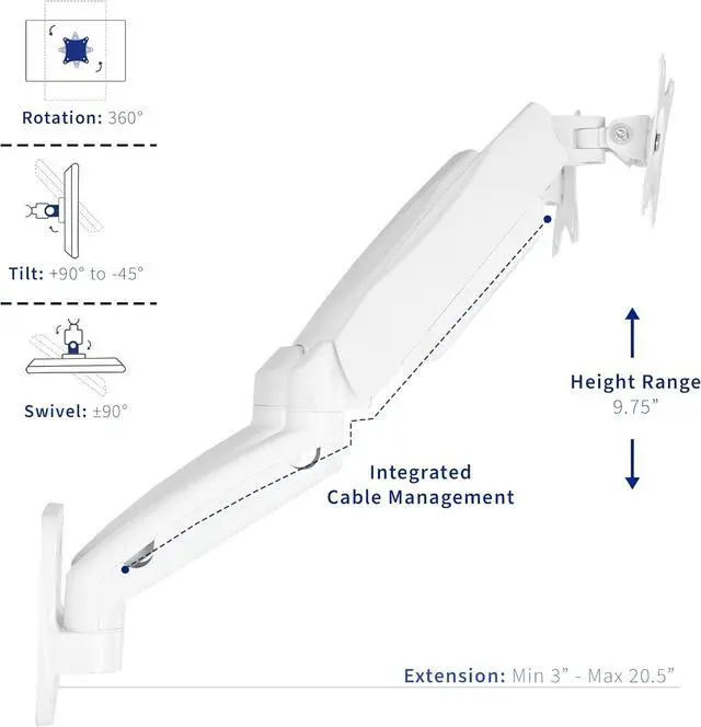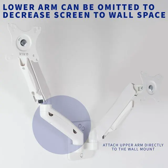 Counter-Balance Wall Mount - Clear up valuable desk space with a double extended pneumatic spring arm wall mount. Features toolless and instant height adjustment, allowing you to find the perfect ergonomic viewing angle.