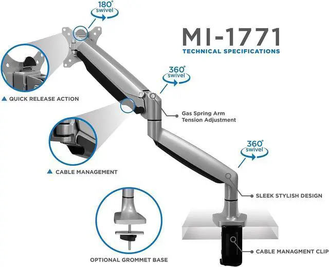 Flexible viewing for everyday tasks Full motion arm lets you tilt, swivel, rotate 360°, and extend up to 24 to reduce glare, improve posture, and adapt your setup as needed.