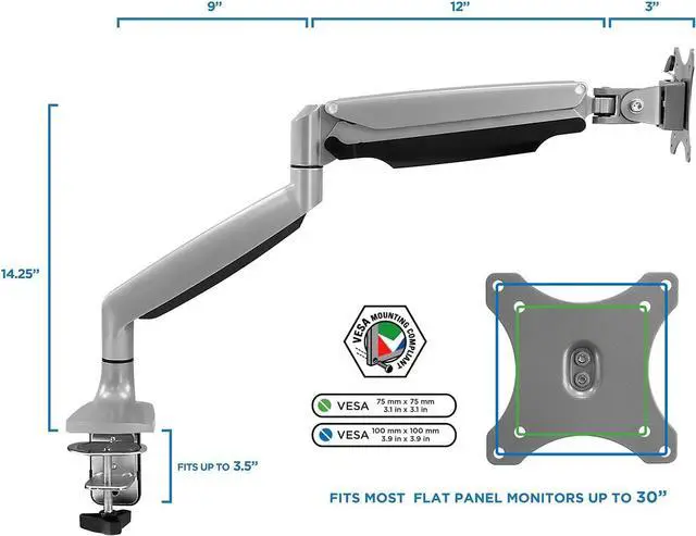 Designed for single-monitor setups Supports one flat-panel LCD or LED screen from 13 to 32 up to 20 lbs using standard VESA 75x75 or 100x100 mounting patterns.