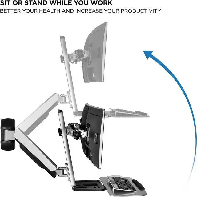 Work in your best and most comfortable position with the Adjustable Sit-Stand Wall Mount by Mount-It!