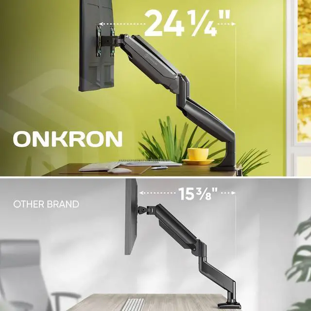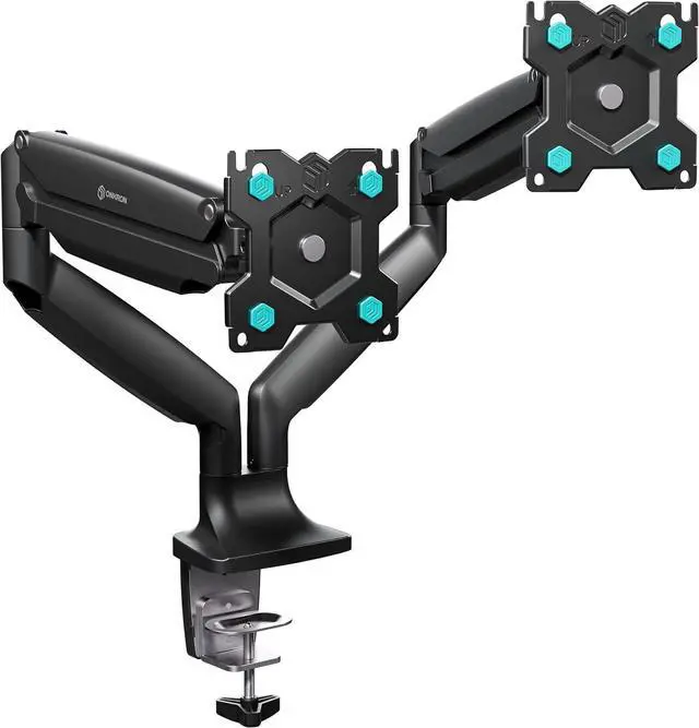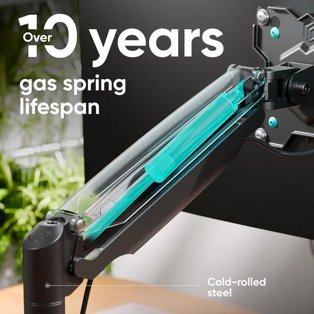 COMPUTER ARM QUALITY AND DESIGN | Monitor stand for 2 monitors has high quality of all parts - from protective inserts of desk monitor mount , to the gas spring monitor arm system, which will live up to 50,000 cycles | Every monitor arm mount undergoes multi-stage quality control | 5 year warranty for your VESA monitor stand !