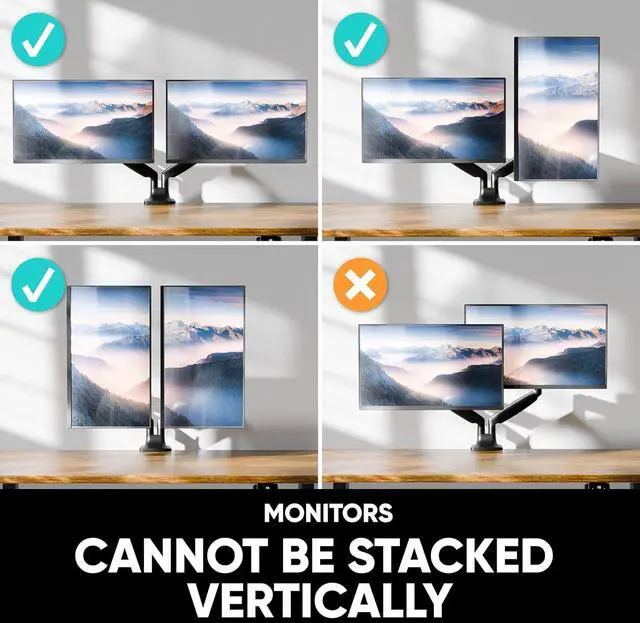 EASY INSTALLATION MONITOR STANDS | Install monitor arm mounts onto the edge of the desk with monitor clamp or grommet | Stacked monitor mount can be positioned differently : dual monitor stand vertical or horizontal | Attach and detach your monitor mounts in a few minutes thanks to the removable VESA mount panel of 2 monitor stand