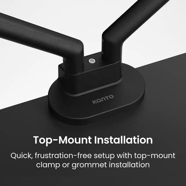 Skip the under-desk struggle. DM2s top-tightening clamp fits desks 0.42 thick, and grommet fits up to 2.2 for fast, frustration-free setup.