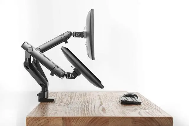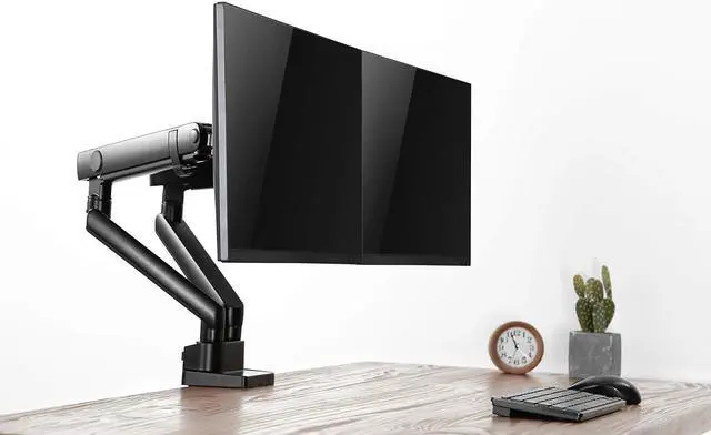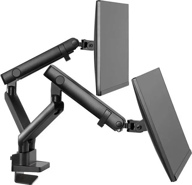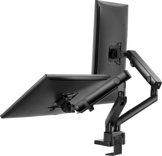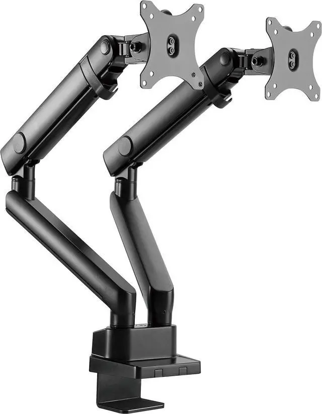 Amer Mounts HYDRA2B is an articulating dual monitor mount that clamps onto the side of your desk to create more desktop space to maintain organization. Its optimizing elbow spring gauge offers the performance and quality needed for weight adjustment. Its ergonomic design works to reduce strain by allowing you to customize your work station and adjust your monitors to the right position for you. Work more effectively by freeing up your desk and creating an organized work space. Dynamically rotate and pivot screens when working on different tasks or sharing your display with others. Quick release VESA plates make installation easy.