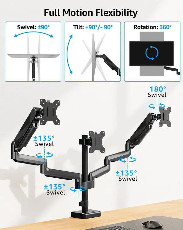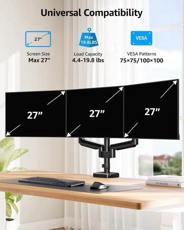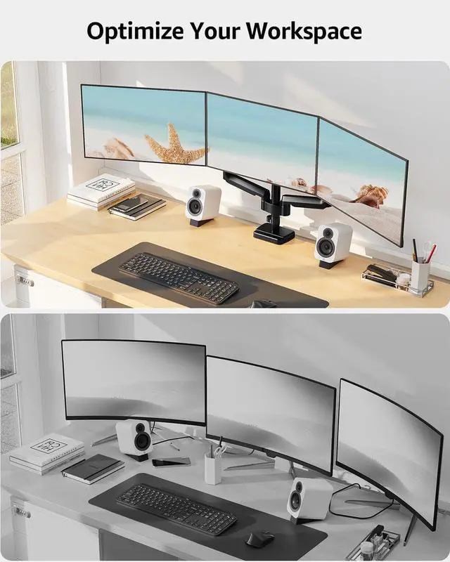 MOUNTUP Triple Monitor Stand Mount Do you want to have the screens wrap around you? Additional Checklist For Special Desks Will this monitor stand fit your setup?