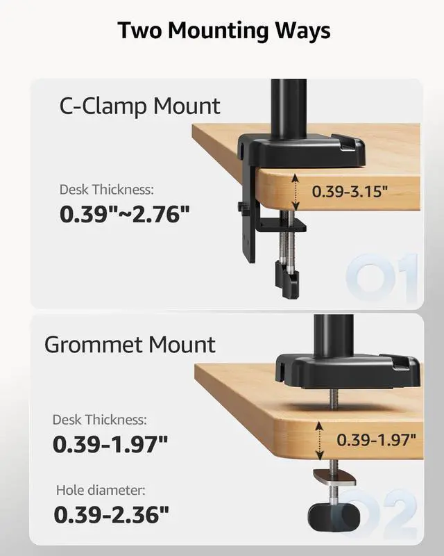 Though the clamp is equipped with pad, If your monitor is heavy or your desktop is thin, we recommend you purchase a desk reinforcement plate to spread out the pressure of the mount over a large area, defending your desks from damage.