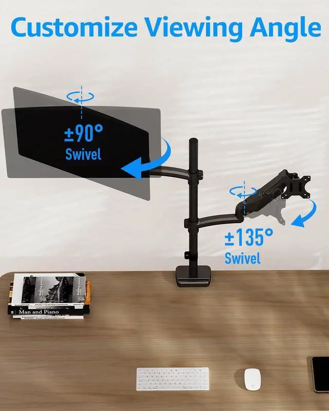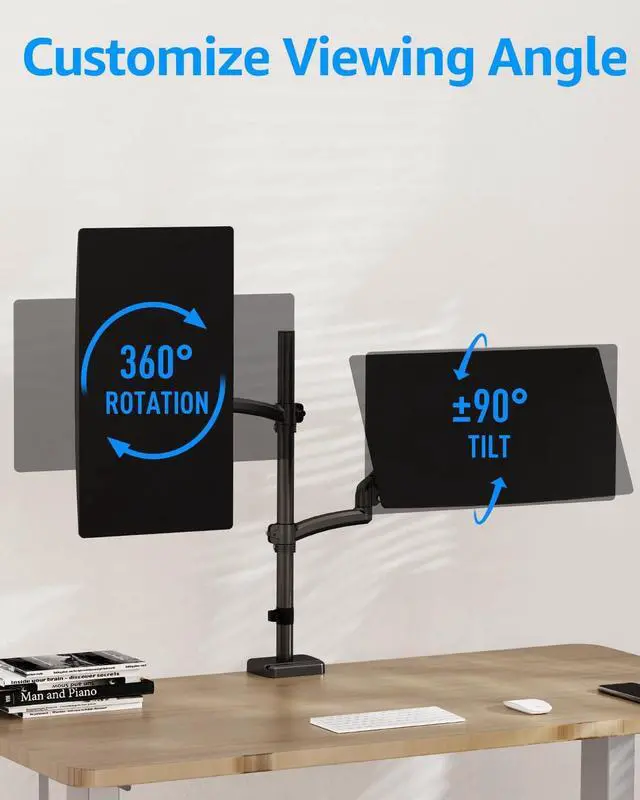 Customize Your Screen Angle-This full motion dual stacked monitor mount allows your monitor ±90° tilt, 180°swivel and 360°rotate to find an optimal view angle to meet your demands.