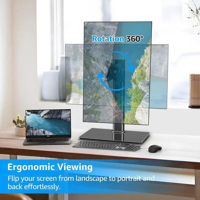 Ergonomic Viewing - VESA stand offers improved viewing comfort. It comes to adjustable bracket offering tilt +30°/- 30°, swivel +25°/- 25°, rotation 360°, and adjustable height up to 6.89" to fit different sitting positions. With the freestanding design, more convenient and no need for drilling any grommet hole or using any clamp.