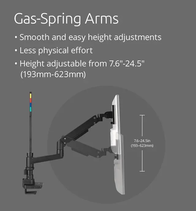 Gas-spring arms support effortless height adjustments