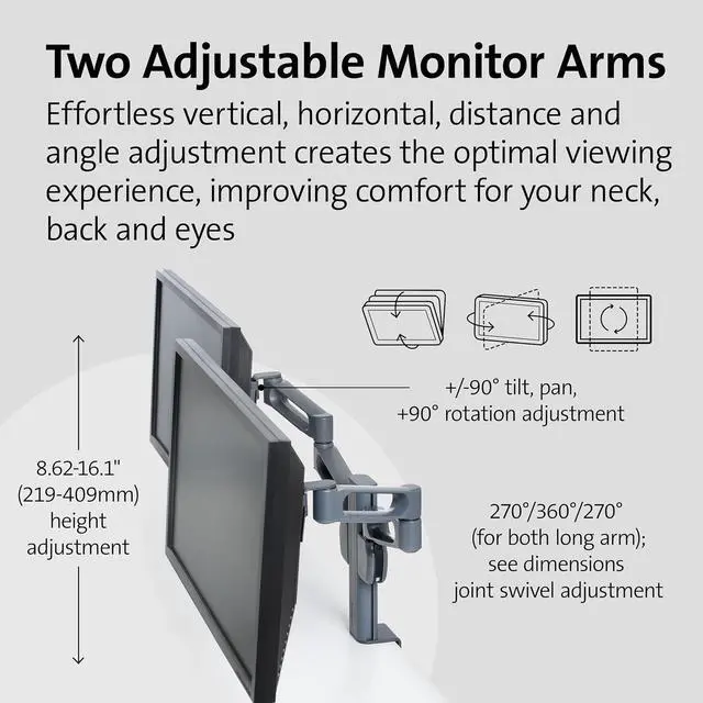 Compatible with displays up to 24; maximum 25 lbs. Per arm