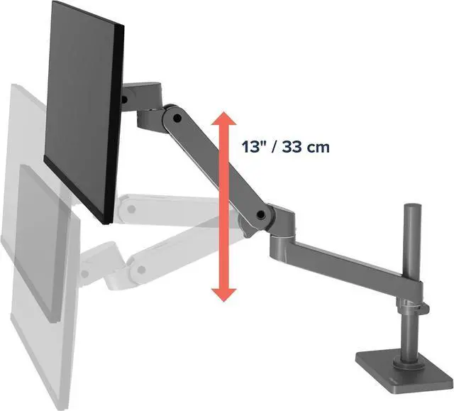 • Elevate comfort: Easily raise your monitor up to 25 inches above your worksurface with 13 inches of lift; find your best view for each project with 360 degrees of rotation and 85 degrees of tilt