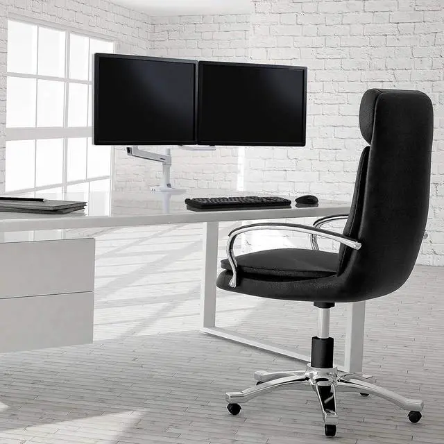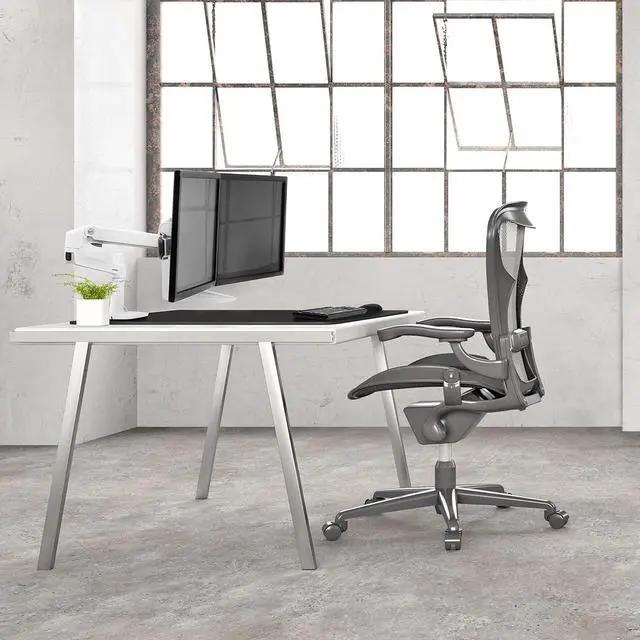 • Stylish and functional: Low-profile monitor crossbar adjusts both monitors in one smooth, compact motion; provides new heights of flexible viewing comfort; arm folds out of the way to reclaim space for other desktop tasks