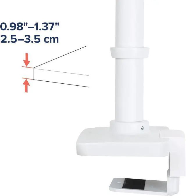 Versatile mounting options: Includes arm, extension, base, mounting hardware and low-profile desk clamp for cubicle systems or freestanding tables; low-profile desk clamp attaches to desks 0.98 to 1.38 inches thick; optional separate accessories (98-477-216 or 98-478-216) can accommodate smaller surface edge thicknesses