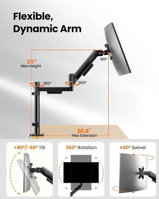 ErGears additional vertical pole lets you create a true stacked monitor mount setup. Unlike typical dual monitor stand solutions that cannot support stable screen stacking, this design ensures both monitors are aligned and secure, providing a cleaner, more efficient stacked configuration.